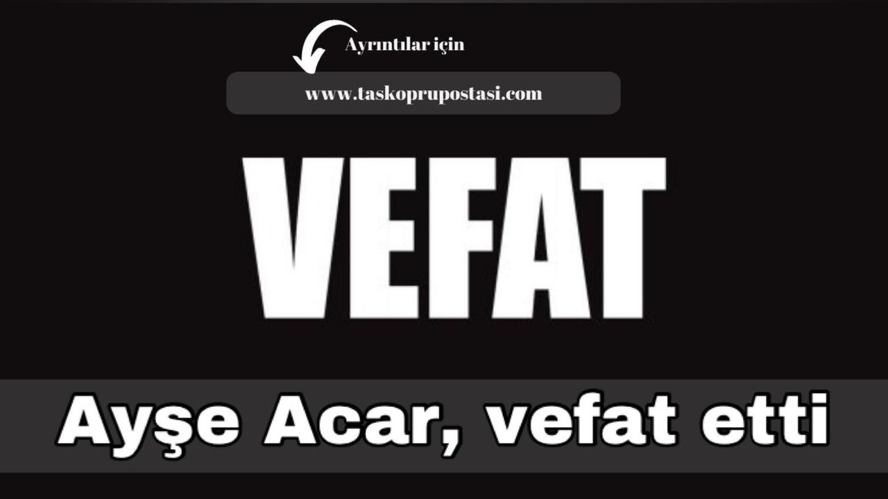 Yukarı Çayırcık köyünden şükrü Acar'ın annesi, Recep Acar'ın babaannesi, Fuat Acar'ın kayınvalidesi, Kaymakamlık şoförü Hüsnü Acar'ın anneannesi Ayşe Acar hakkın rahmetine kavuştu. Cenazesi bugün Yukarı Çayırcık Köyünde ikindi namazına müteakip kılınacak cenaze namazının ardından hakka tevdi edilecek. Taşköprü Postası Gazetesi olarak merhumeye Allah'tan rahmet ailesi ve sevenlerine başsağlığı dileriz.