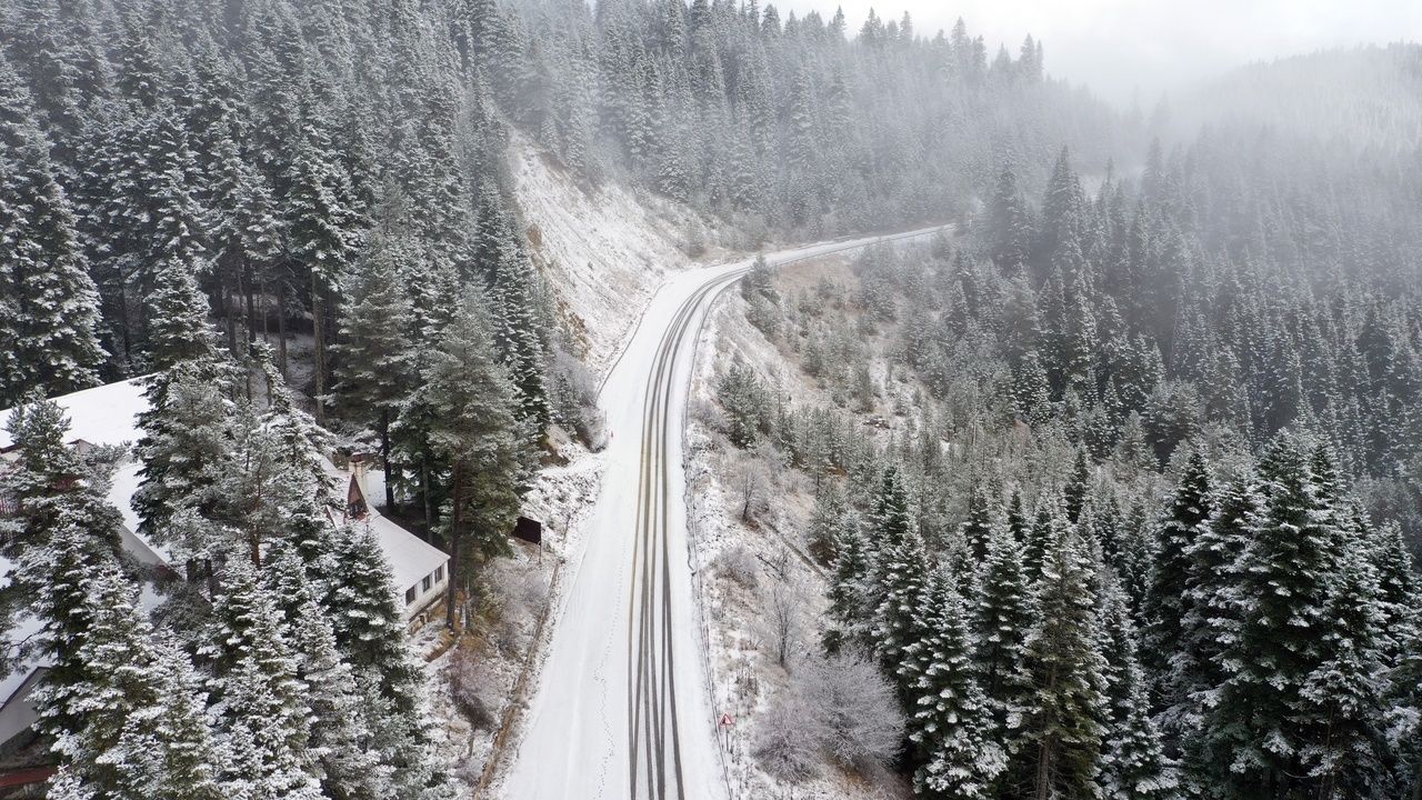 Doğanın beyaz örtüyle kaplandığı Ilgaz Dağı, dron ile havadan da görüntülendi. Havadan çekilen görüntülerde, karla kaplı ormanlar, kıvrılarak yükselen dağ yolları ve sisin dağ eteklerine doğru süzülmesi dikkat çekti.
