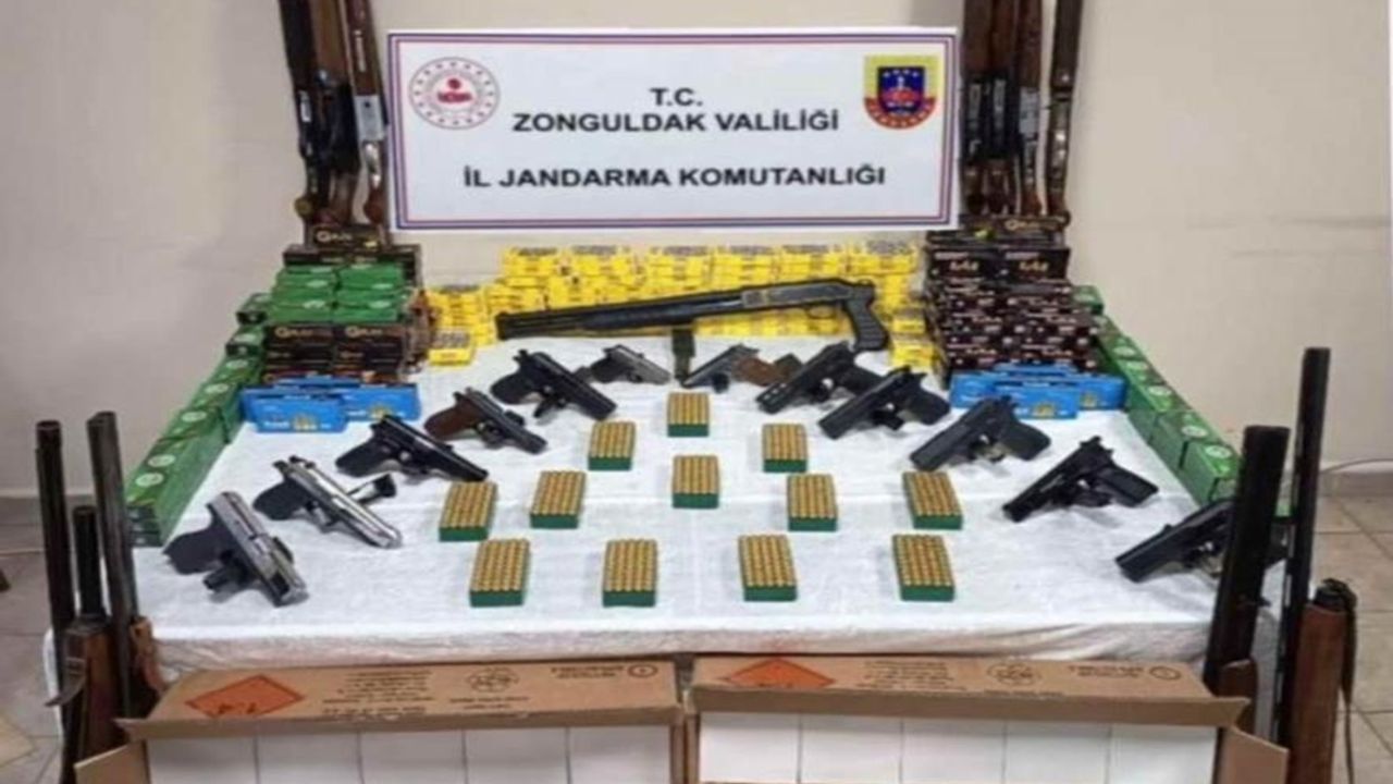 Zonguldak İl Jandarma Komutanlığı, silah kaçakçılığıyla mücadele kapsamında Çaycuma ilçesinde kapsamlı bir operasyon başlattı. Adli makamlardan alınan arama kararı doğrultusunda 7 şüpheliye ait 9 ayrı adrese eş zamanlı baskın düzenlendi. Jandarma ekiplerinin titiz çalışması sonucunda, adreslerde adeta bir cephanelik ortaya çıkarıldı.