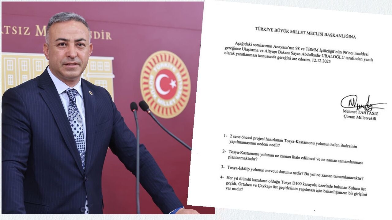 Çorum Milletvekili ve Cumhuriyet Halk Partisi (CHP) üyesi Mehmet Tahtasız, Tosya ve çevresinde uzun süredir çözüme kavuşturulamayan ulaşım sorunlarını Türkiye Büyük Millet Meclisi (TBMM) gündemine taşıdı. Tahtasız, Ulaştırma ve Altyapı Bakanı’nın yanıtlaması istemiyle verdiği yazılı soru önergesiyle, bölgedeki önemli karayolu projelerinin akıbetini sordu.