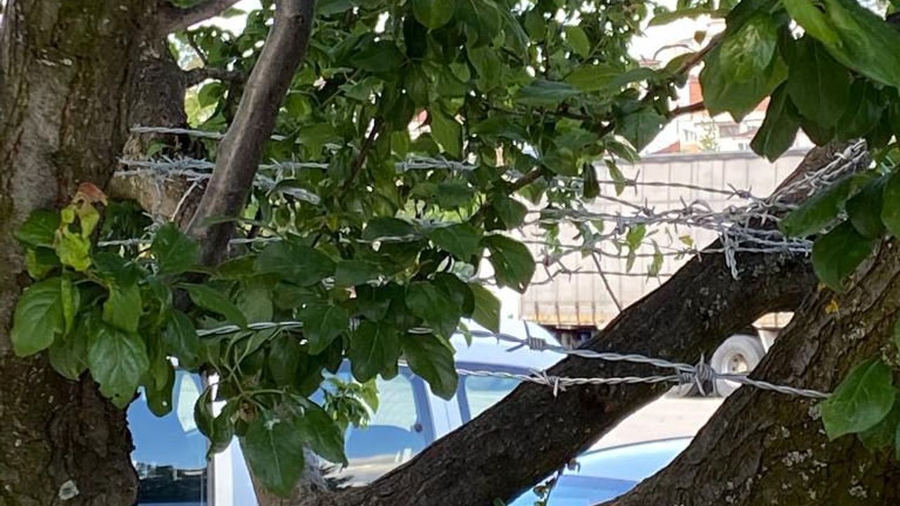 Belediye, durumun kendilerine bildirilmesinin ardından ekiplerin dikenli telleri ağacın gövdesinden sökeceğini açıkladı.