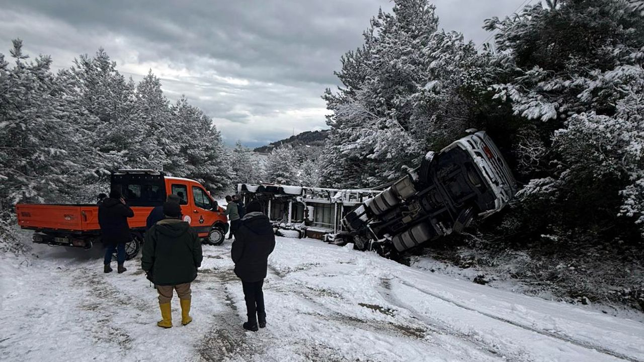 Şarampole devrilen tırın bulunduğu yerden kaldırılması için çalışma başlatılırken, ekiplerin bölgede bir süre daha tedbir amaçlı bekleyişini sürdürdüğü öğrenildi.