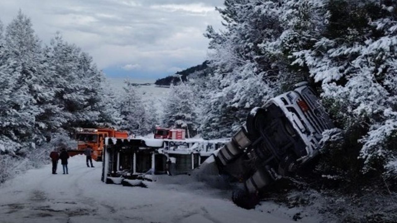 Kastamonu’nun İnebolu ilçesi ile Abana ilçesi arasındaki Darsu mevkisinde buzlanma nedeniyle kontrolden çıkan doğalgaz yüklü tır devrildi. Kazada tırın yola devrilmesiyle birlikte bölgede ulaşımda aksamalar yaşandı.