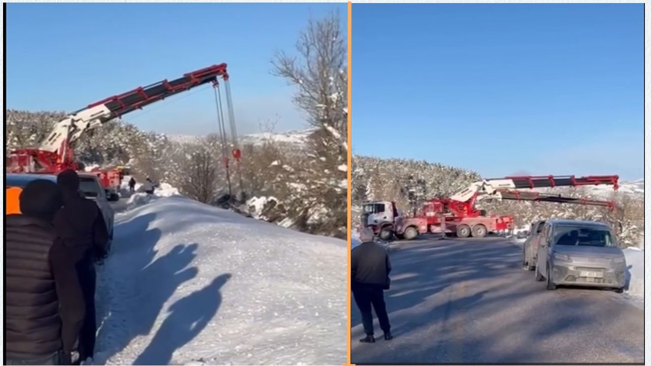 Yetkililer, vinçle yürütülen kaldırma işleminin sorunsuz tamamlanmasının ardından yolun yeniden ulaşıma açılacağını bildirdi.