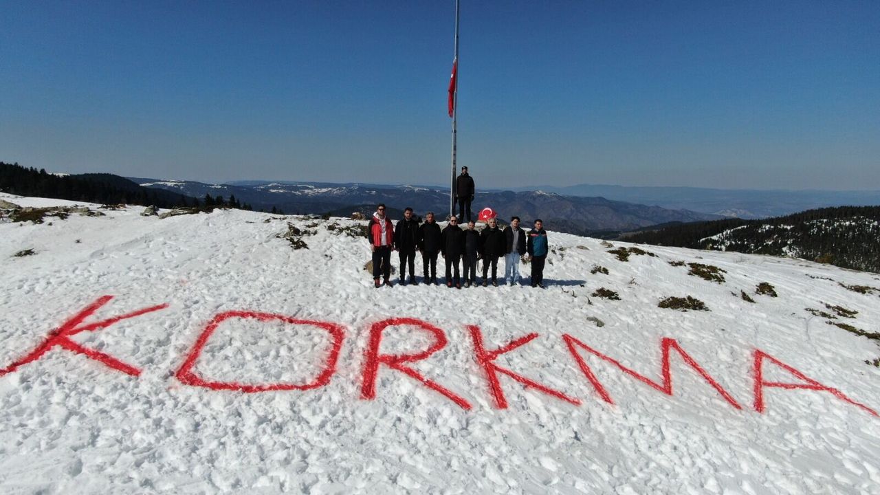 "Milli Şairimiz Mehmet Akif Ersoy'un ‘korkma' nidasını, ölümsüz eserinin ilk kelimesini buraya nakletmeye çalıştık. Bilindiği üzere Kastamonu, Kurtuluş Savaşı'nın lojistiğin sağlandığı İstiklal Yolu'nun kalbidir. Biz de bu anlamlı günde bizlere ‘korkma' diyerek cesaret veren bu dizeleri 2 bin 200 rakımlı Ilgaz Dağı'ndaki eşsiz beyazlığa yazarak tüm dünyaya duyurmak istedik"