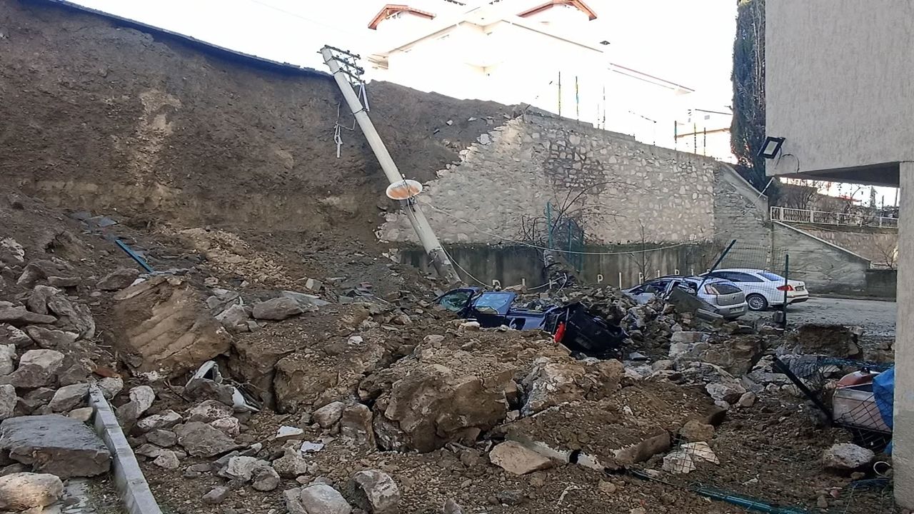 Araçlar Duvarın Altında Kaldı