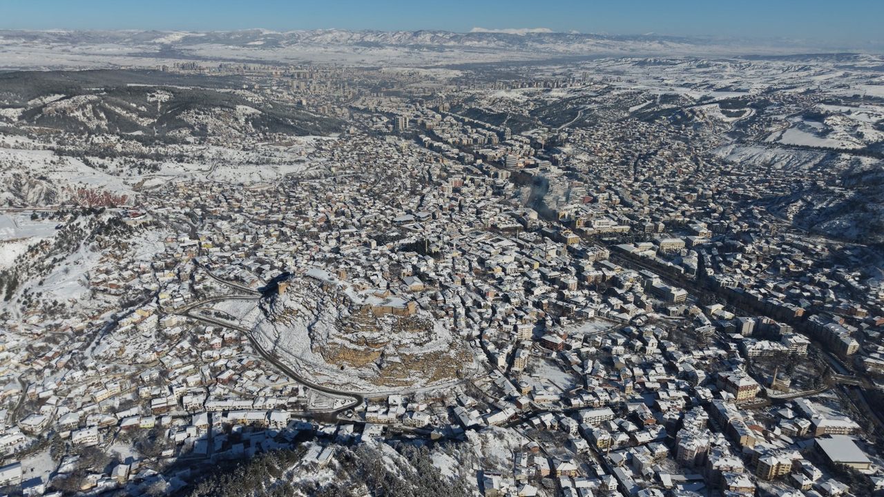 Kar yağışının ardından güneşin yüzünü göstermesiyle birlikte Kastamonu’da ortaya çıkan manzara, dron kamerasıyla havadan görüntülendi. Beyaz örtüyle kaplanan kent merkezi, kartpostallık bir görünüme kavuştu.