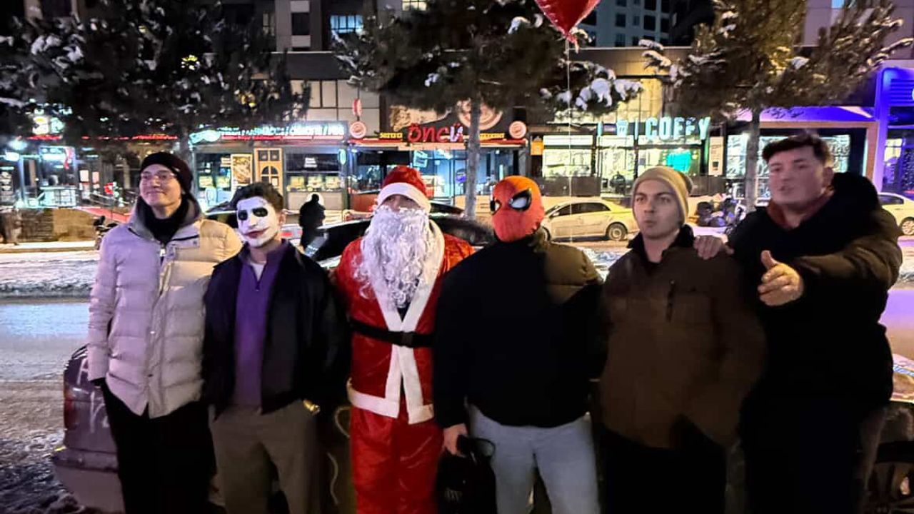 Noel Baba kostümlü kişi, şehir merkezinde dolaşarak yılbaşı konseptli düdük, şapka ve maskeler dağıttı. Vatandaşlar, sürpriz etkinliğe büyük ilgi gösterirken, dağıtılan hediyelerle yılbaşı coşkusu daha da arttı.