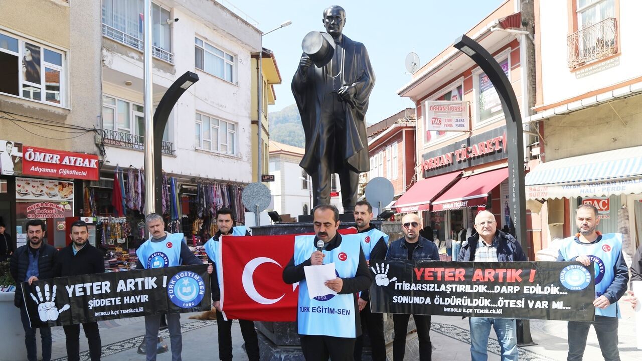 Kastamonu’da faaliyet gösteren Türk Eğitim Sen İnebolu Temsilciliği öncülüğünde, Atatürk Anıtı önünde bir basın açıklaması düzenlendi. Çok sayıda sendika üyesi öğretmenin katıldığı etkinlikte, yaşanan saldırının sadece bölgesel değil, ulusal ölçekte bir sorun olduğuna vurgu yapıldı.