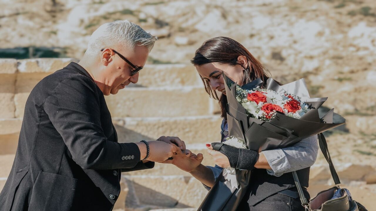 Yüksel, “Onun tarihe olan ilgisini biliyordum ama böyle bir sürpriz beklemiyordum. 2 bin yıllık tarihi bir tiyatroda yapılan bu anlamlı teklif beni çok mutlu etti. Cevabım elbette ‘evet’ oldu. Şimdi birlikte yeni bir hikâye yazmaya hazırlanıyoruz” dedi.