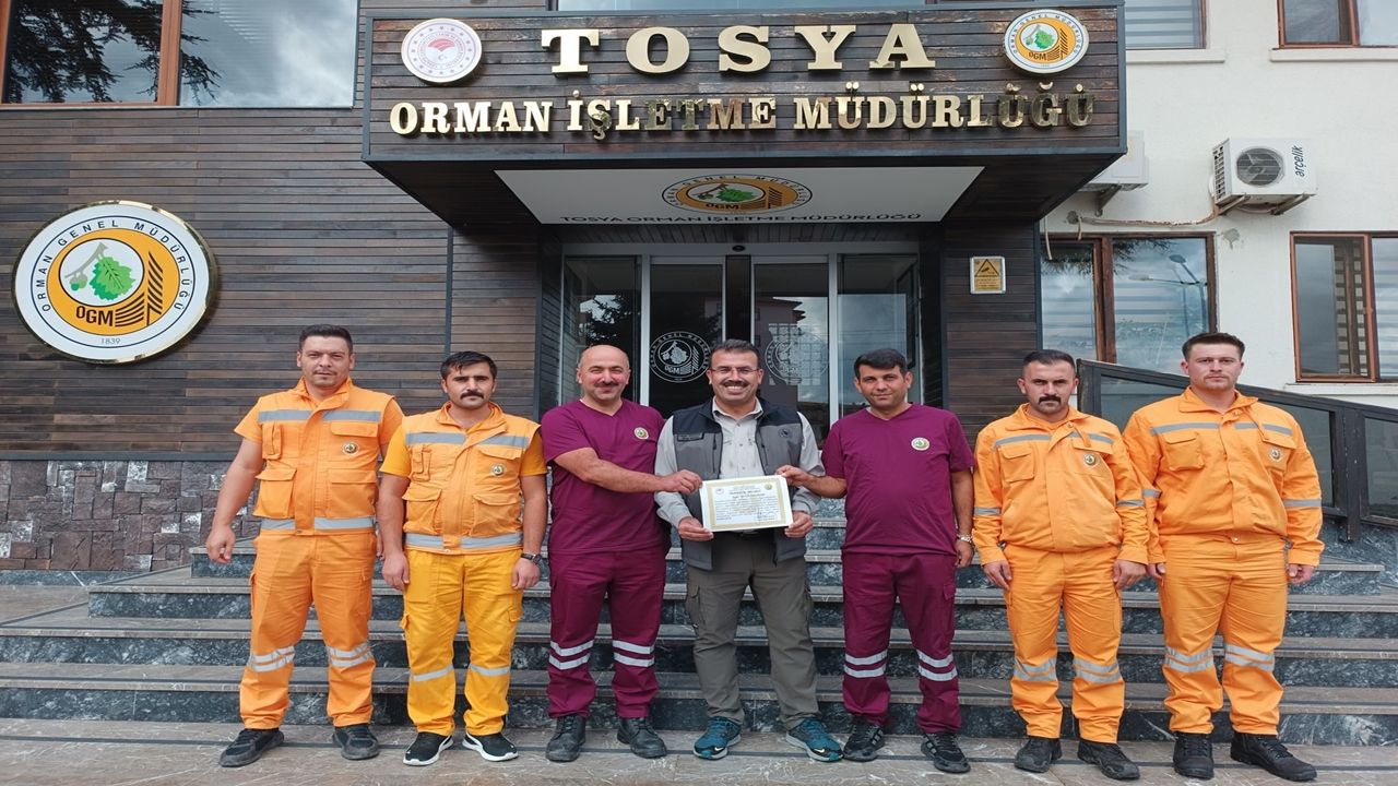 Kastamonu Orman Bölge Müdürü Hakan Yaslıkaya, yangınlarda üstün performans gösteren Tosya Orman İşletme Müdürlüğü ekibini makamında ağırlayarak, kendilerine teşekkür belgelerini takdim etti. Yaslıkaya, yaptığı açıklamada, orman teşkilatının doğaya olan sevgisinin ve vatana olan bağlılığının, bu tür özverili çalışmalarla bir kez daha kanıtlandığını belirtti.