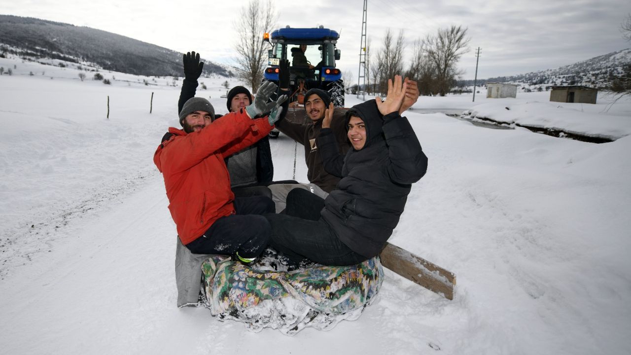 Emre Yaldız da köyde sosyal alanların sınırlı olduğunu ifade ederek, “Köyde kahvehane yok, yapacak etkinlik yok. Köyde genç nüfus da çok. Biz de kızaklarla kayıyoruz. Traktöre bağlıyoruz, önüne tahtadan bir aparat yaptık, yolda kar olduğunda yolu da açsın diye. Sonra küçük kızaklar yaptık, onlarla da kayıyoruz. Bu şekilde köyde vakit geçiriyoruz.” ifadelerini kullandı.