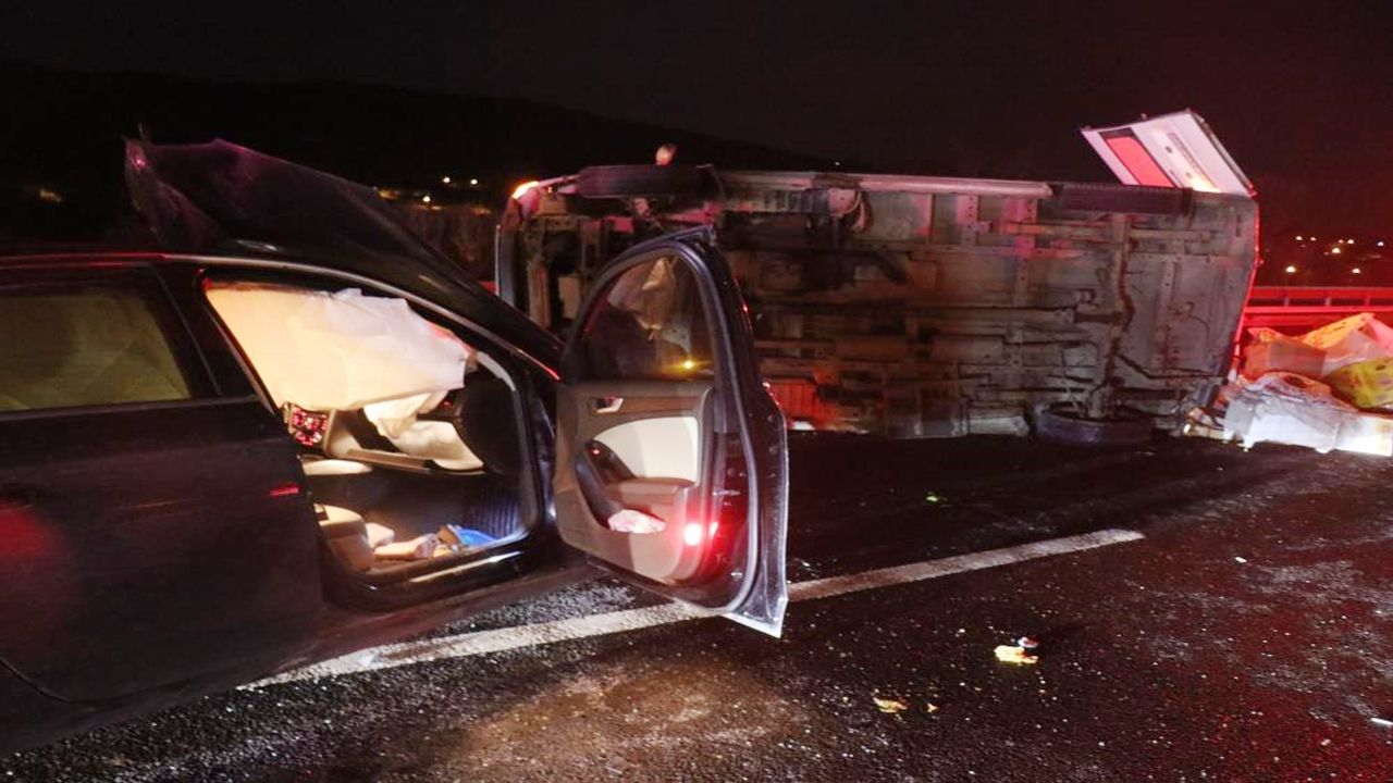 Edinilen bilgilere göre kaza, Anadolu Otoyolu’nun Sakarya Hendek geçişinde, İstanbul istikametinde meydana geldi. Sürücülerinin kimlikleri henüz belirlenemeyen 34 GEK 18 plakalı Audi marka otomobil, aynı yönde seyir halinde olan 27 AKZ 677 plakalı minibüse çarptı. Çarpmanın etkisiyle minibüs kontrolden çıkarak yan yattı ve bir süre sürüklendi.