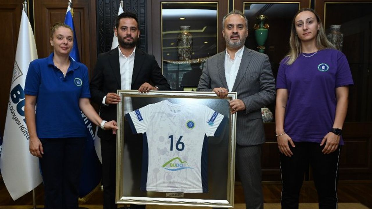 Geçtiğimiz sezon başında Bursa Büyükşehir Belediyespor bünyesine dâhil olan, henüz ikinci yıllarında Türkiye Şampiyonu olarak Süper Lig’e yükselen Poyrazın Kızları, yeni sezon öncesi Büyükşehir Belediye Başkanı Alinur Aktaş’ı ziyaret etti.BURSA (İGFA) - Yaklaşık 10 yıl önce Mudanya’da ilkokul 4. sınıftayken Antrenör Merve Yılmaz tarafından okullardan seçilerek hentbolla tanışan ve kısa zamanda ayakta alkışlanacak bir başarı hikâyesine imza atan Poyrazın Kızları, son 2 yıldır Bursa Büyükşehir Belediyespor Kulübü’nün formasını terletiyor.