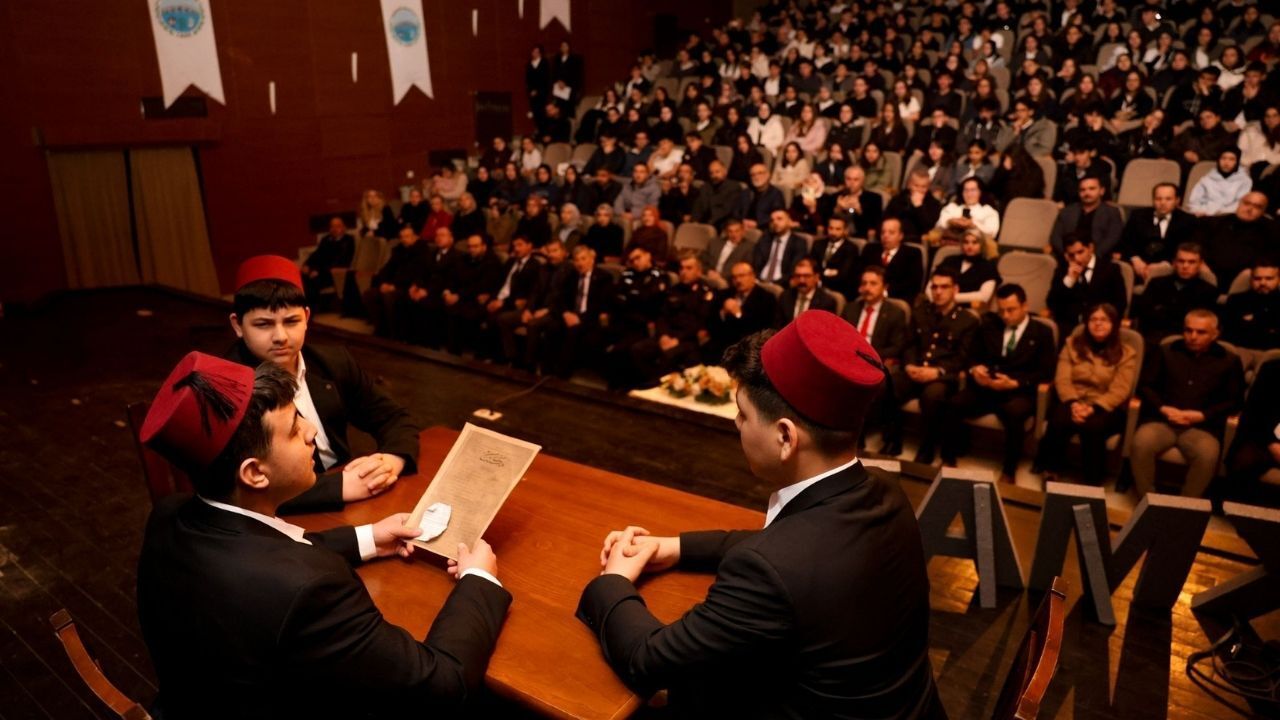 Programın dikkat çeken bölümlerinden biri, öğrencilerin hazırladığı oratoryo gösterisi oldu. Mehmet Akif Ersoy’un İstiklal Marşı’nı kaleme aldığı anı canlandıran sahne, salonda duygusal bir hava oluşturdu.