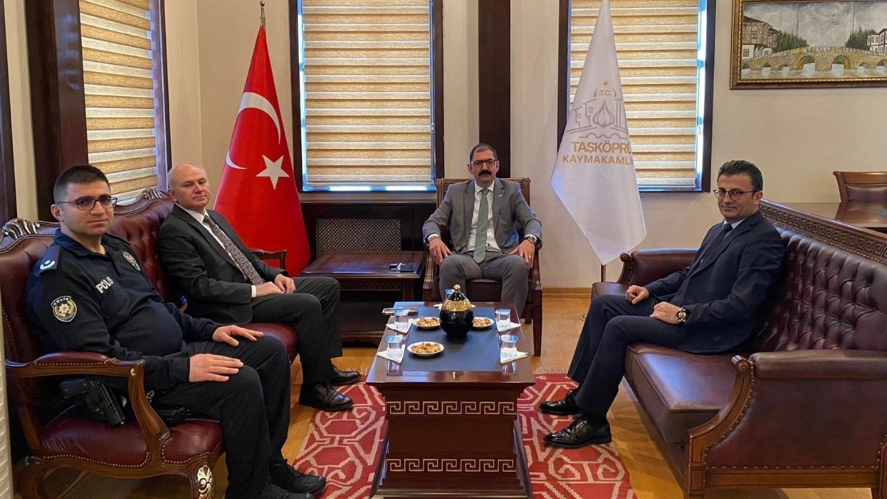 Taşköprü’de güvenlik ve asayiş hizmetlerine yönelik temaslar sürüyor. Polis Başmüfettişi 1. Sınıf Emniyet Müdürü Haluk Demir ile Polis Başmüfettişi 1. Sınıf Emniyet Müdürü Asım Dursun, İlçe Emniyet Amiri Sadettin Öndeş ile birlikte Taşköprü Kaymakamı Abdullah Demirdağ’ı ziyaret etti.