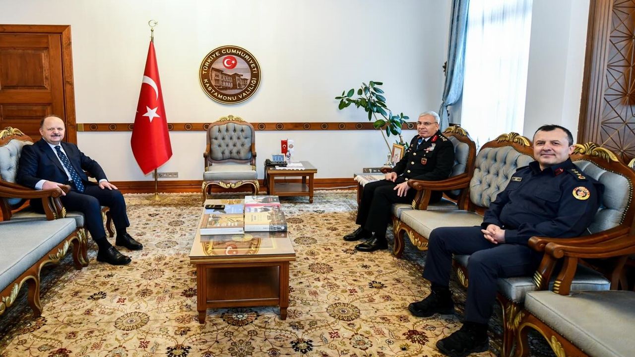 Valilik makamında gerçekleşen görüşmede, Kastamonu’da sürdürülen jandarma faaliyetleri, denetim ve değerlendirme süreçleri ile kamu düzeninin sağlanmasına yönelik çalışmalar değerlendirildi. Tümgeneral Şakir Uslu, Jandarma Genel Komutanlığı’nın yürüttüğü denetim faaliyetleri hakkında bilgi verirken, sahadaki uygulamaların etkinliği ve vatandaş odaklı güvenlik anlayışının önemi üzerinde durdu.