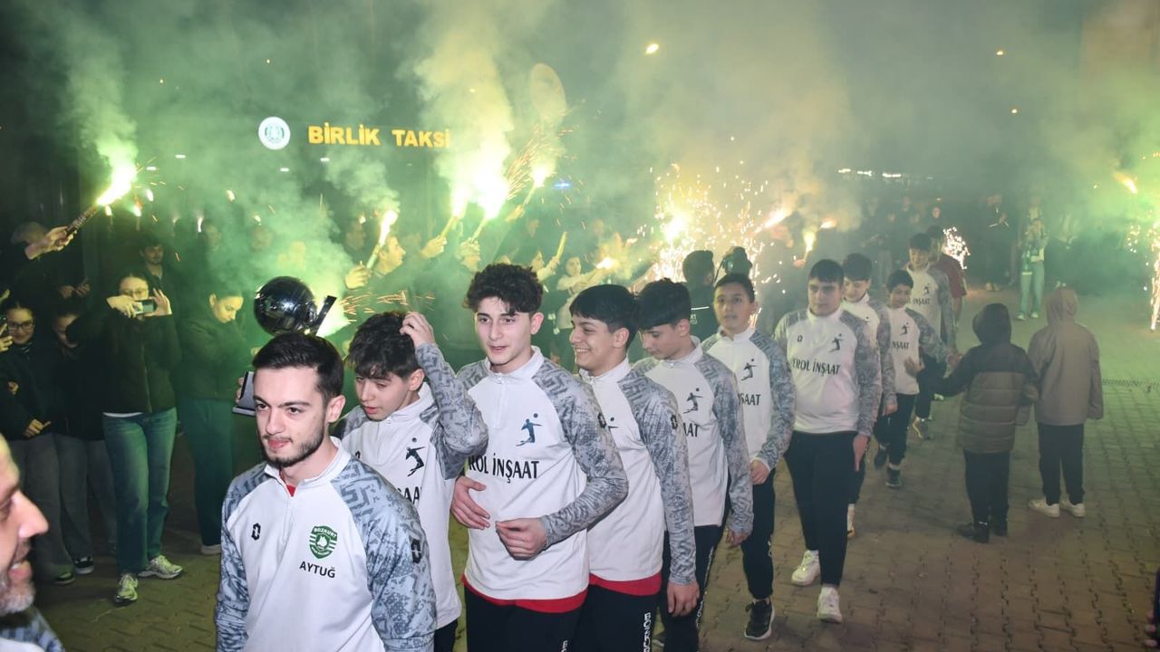 Kapalı Pazaryeri’nde düzenlenen programda öğrenciler ve vatandaşlar marşlar eşliğinde şampiyonluğu kutladı. Bozkurt Belediyesi tarafından organize edilen etkinlikte pasta kesildi, müzik ve havai fişek gösterileriyle kutlamalar renklendi.