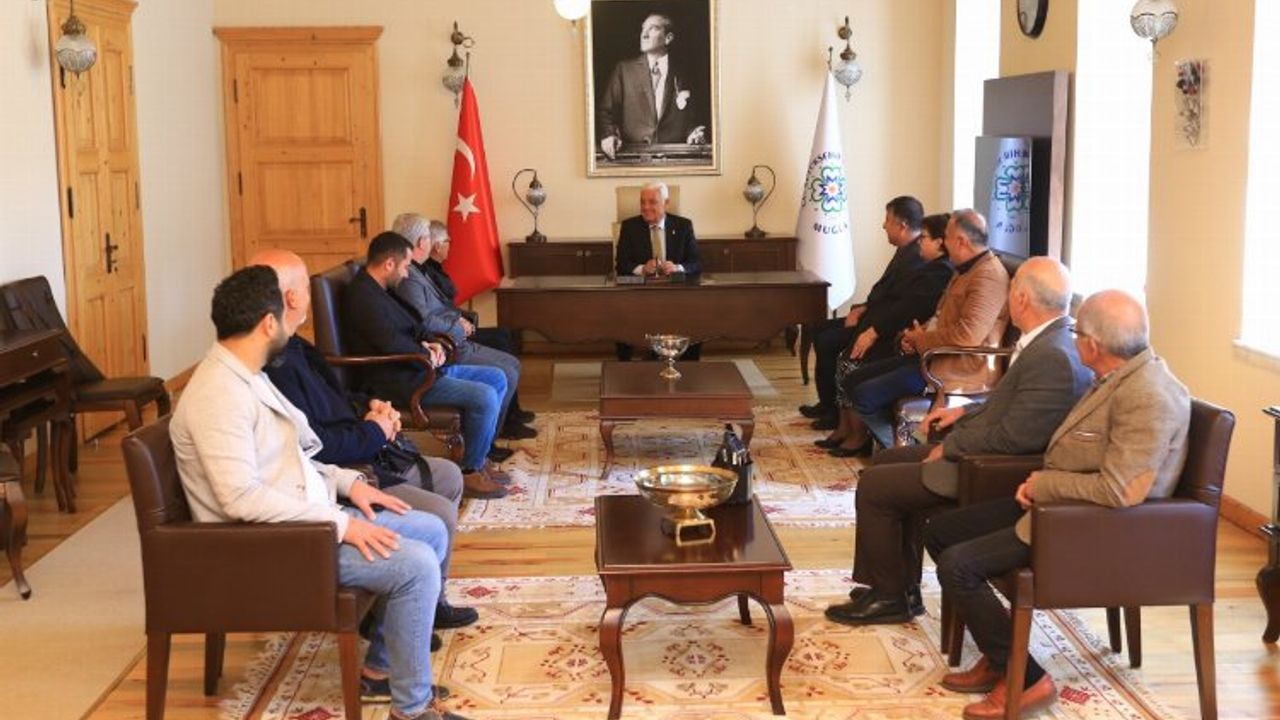 MUĞLA (İGFA) - Muğla Büyükşehir Belediye Başkanı Dr. Osman Gürün’e teşekkür ve veda ziyaretine Muğla Tarım Güçbirliği İşletme Kooperatifi ve Güçbirliği ortağı Bafa Doğal Yaşam Tarımsal Üretim Ve Pazarlama, Fethiye Ata Tarımsal Kalkınma, Karabörtlen Tarımsal Kalkınma, Marmaris Makko Kadın Girişimi İşletme, Marmaris Tarımsal Kalkınma, Yerkesik Tarımsal Kalkınma, Beyobası Tarımsal Kalkınma, Datça Sındı Tarımsal Kalkınma kooperatifleri katıldı.