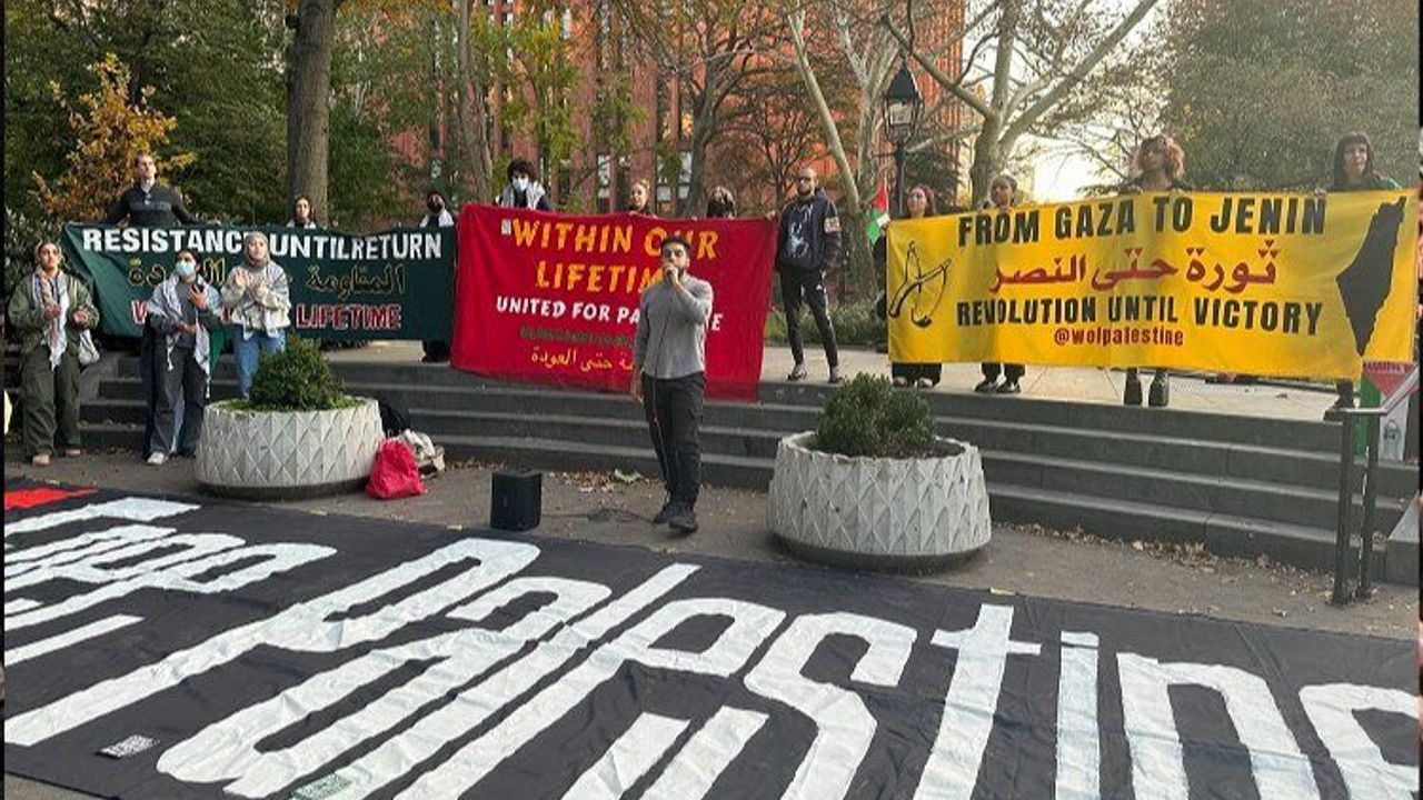 Washington Square Park’ta Filistin’e destek vermek için gösteri düzenlendi. Adalet için Öğrenciler grubu protestoyu Filistinlilerin öncülüğündeki toplum örgütü Within Our Lifetime (WOL) ile birlikte organize etti. Gösteriye katılan yüzlerce öğrenci, New York Üniversitesi'nin İsrail-Hamas savaşındaki Filistinli kayıpları tanıması ve üniversitenin Tel Aviv'deki yurtdışı eğitim programını kapatması çağrısında bulundu. Eylemcilerin arasında Yahudilerin olması da dikkat çekti.